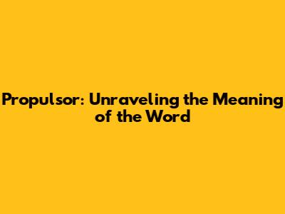 Hey guys! Ever stumbled upon a word and thought, "What in the world does that even mean?" Today, we're diving deep into one such word: "propulsor." We're going to break down its meaning, explore its origins, and see how it's used in different contexts. So, buckle up and get ready for a linguistic adventure!